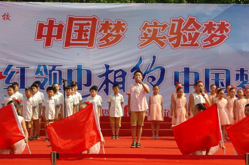 经典浸润童心,书香滋养人生。为进一步传承和弘扬中华民族优秀传统文化,推进经典诵读活动的深入开展, 5月29日上午,郴州市北湖实验学校在学校田径场隆重举行“红领巾相约中国梦”主题队日活动暨庆六一经典诵读大赛。